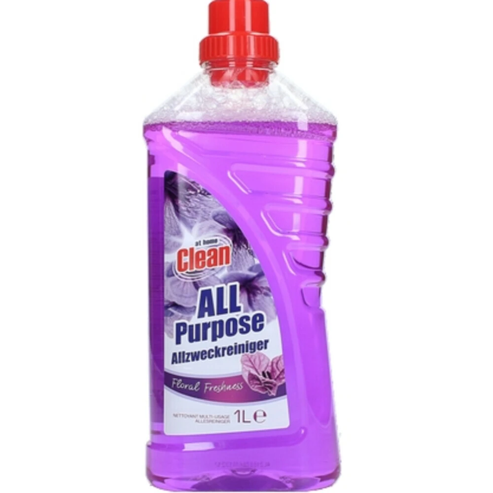At Home Allesreiniger Floral Freshness 1000 mlDeze krachtige allesreiniger is te gebruiken op o.a. glas, laminaat, en roestvrij staal. Met de krachtige geconcentreerde formule is slechts een dopje genoeg voor een emmer sop! Deze allesreiniger heeft een heerlijke Floral Freshness geur.Te gebruiken op o.a. glas, laminaat, en roestvrij staalMet de krachtige geconcentreerde formuleDeze allesreiniger heeft een heerlijke Floral Freshness geur