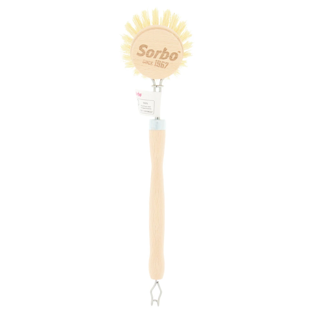 Sorbo Afwasborstel Hout Met FibervullingEen schone vaat met de Sorbo houten afwasborstel! De Sorbo houten afwasborstel met fibervulling maakt je vaat weer glanzend schoon. De stevige tampico borstelharen kunnen beter tegen hitte dan kunststof haren. Daarnaast houdt dit natuurlijke materiaal het water nog beter vast. Zo week je gemakkelijk het vuil los en krijg je ook aangekoekte pannen goed schoon.Deze houten afwasborstel heeft een ergonomische grip en een ronde kop. Hiermee bereik je ook de las