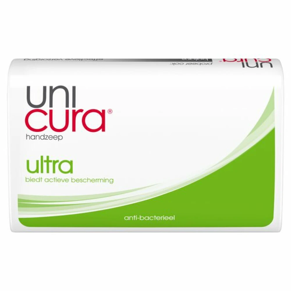 Unicura Tabletzeep Anti Bacterieel UltraHet klinisch bewezen Unicura Ultra Antibacteriële Tabletzeep is speciaal ontwikkeld om elke dag te zorgen voor uiterst schone handen. De formule met een antibacteriëel ingrediënt beschermt je handen effectief tegen elke vorm van bacteriën die je tegenkomt tijdens je dagelijkse bezigheden. Ook bevat het limoenextract om sterke geuren te kunnen neutraliseren, zoals knoflook- en visgeuren. Unicura Ultra Antibacteriële Tabletzeep