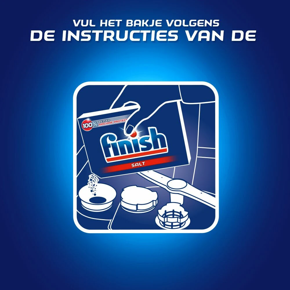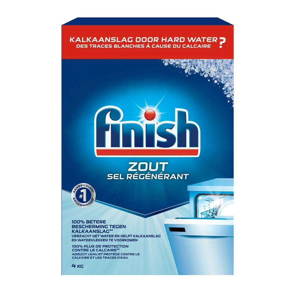 Finish Vaatwas ZoutFinish Vaatwasmachine Zout beschermt zowel je vaatwasser en filters als bestek en servies. Beschermt ook tegen de vorming van vlekken en sporen door in het water aanwezige kalk.Beschermt de filter, de watersproeier en de machine tegen kalkaanslagBeschermt je serviesgoed en bestek tegen de vorming van vlekken en sporen door in het water aanwezige kalkZorgt voor een efficiënte werking van je vaatwastablettenVoor het beste resultaat raden we je aan om Finish Powerball-tablet