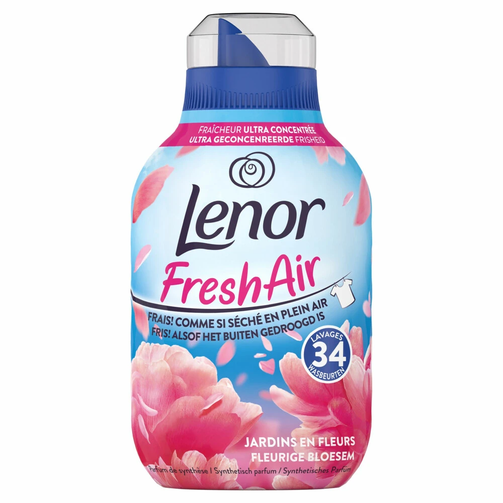 Lenor Fresh Air Wasverzachter BloesemWasverzachter waarmee je de frisheid van buiten drogen ervaart, zelfs als je binnen droogtGerecyclede plastic fles (excl. dop, tuit en huls) en recyclebaar (excl. huls)Je favoriete geur Bloesem met rozengeur wordt gekenmerkt door stralende appelbloesem, zoete meloen en warme amberBeschermt je kleding tegen vervagen, pluizen en uitrekken