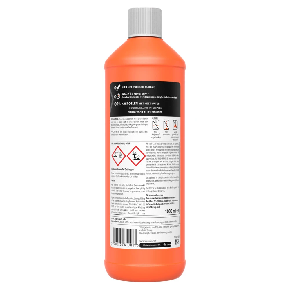 Mr. Muscle Power Gel Ontstopper 1000 MLMr muscle power gel ontstopper vernietigt de hardnekkigste verstoppingen.Veilig voor alle leidingenVoor verstoppingen die veroorzaakt zijn door haar en zeeprestenDringt door in stilstaand water