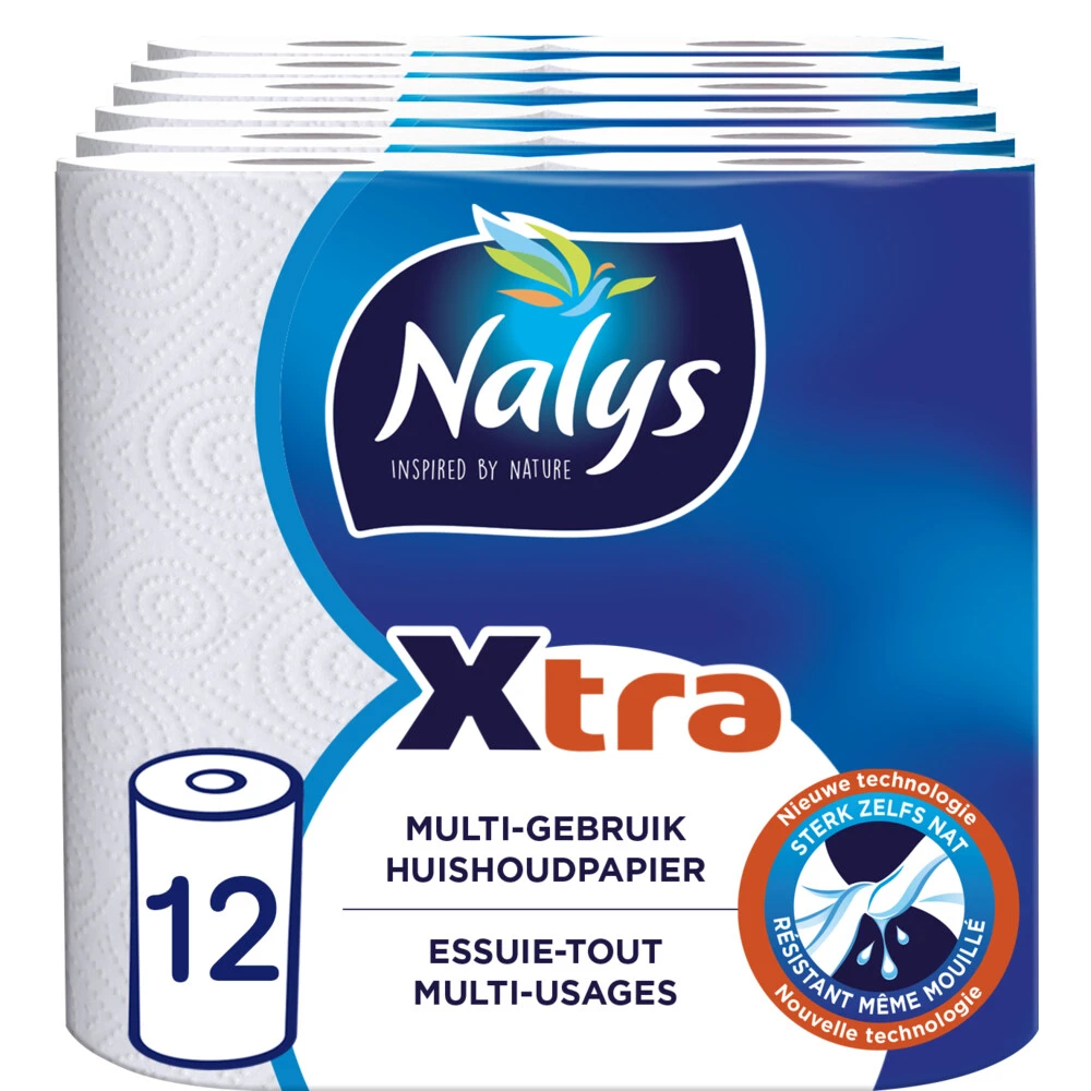Nalys Xtra HuishoudpapierNalys Xtra Huishoudpapier heeft is 10% meer bestendig tegen vocht en 22% meer absorberend. Het huishoudpapier is 2 laags en bevat 45 per rol. Snel en hygiënisch schoon in het alledaagse huishouden, want door het eenmalige gebruik worden afgenomen bacteriën niet verder verspreid.10% meer vochtbestendig22% meer absorberend80% gerecyclede polyverpakkingFSC-gecertificeerd