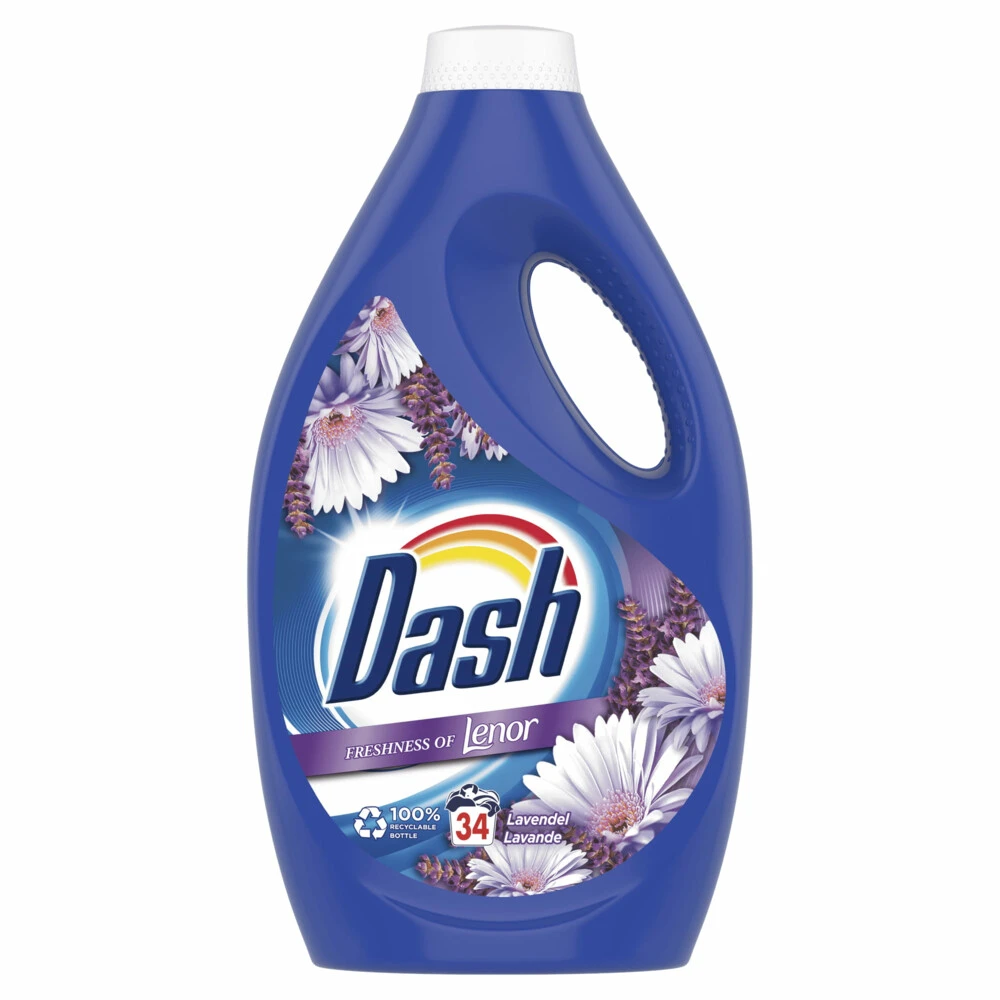 Dash Vloeibaar Wasmiddel LavendelDash en Lenor werkten samen voor dit wasmiddel. Daarom heeft het de kracht van Dash vloeibaar wasmiddel, en de ongekende frisheid van Lenor en haar verfijnde Lavendel geur. Het is heel nuttig voor de voorbehandeling van hardnekkige vlekken omdat je de vloeistof direct op de vlek kunt aanbrengen en nuttig voor de handwas en snelle wasprogramma’s omdat het snel oplost zelfs bij 30 graden. Dankzij de formule die is verrijkt met sterke reinigingsingrediënt