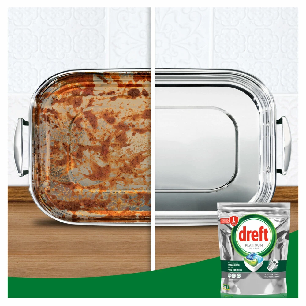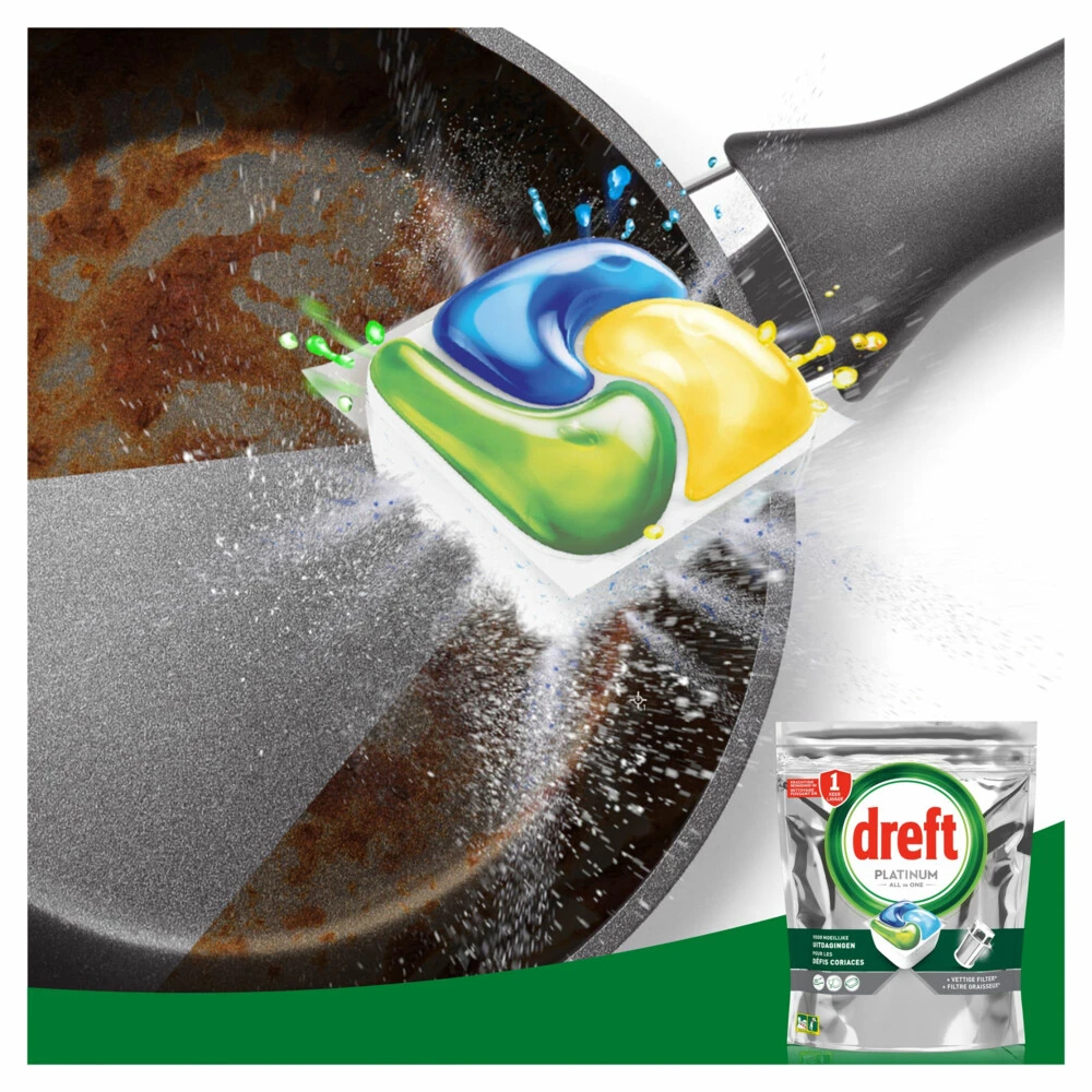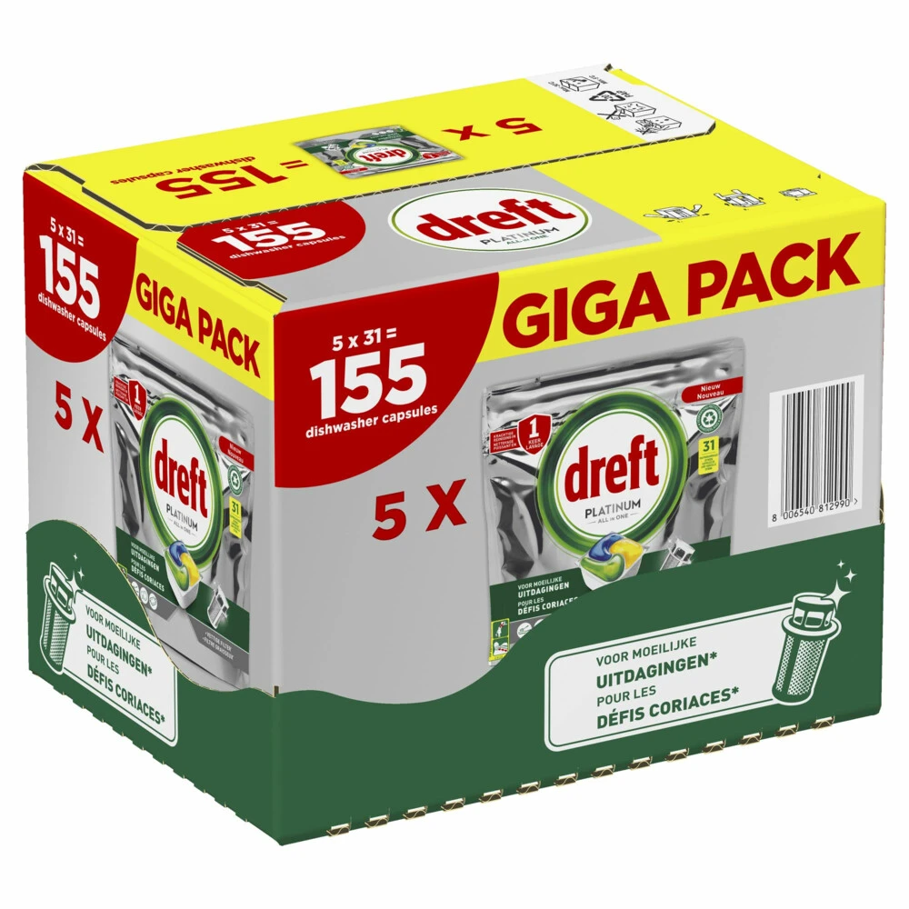 Dreft Platinum All In One Vaatwascapsules Lemon 5 x 31 stuksDreft Platinum capsules reinigen hardnekkige vlekken met een grondige reinigingsactie.Helpt vetophoping in je vaatwasser te voorkomen en reinigt je vette filterIngebouwde zout- en spoelhulpfunctie inclusief glas- en zilverwerkbeschermingHoudt je vaatwasser schoon en frisDe ultra-oplosbare capsule lost snel op