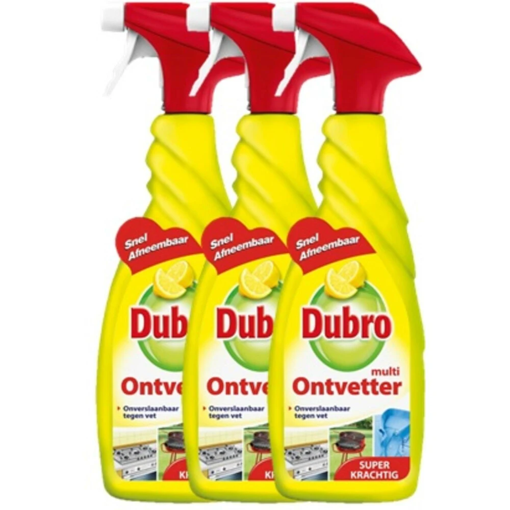 Dubro Multi Ontvetter SprayDubro Multi Ontvetter is een superkrachtige geconcentreerde ontvetter die effectief is op alle soorten vuil. Het verwijdert zelfs verbrand en aangekoekt vet. Dubro Multi Ontvetter is eenvoudig af te spoelen en zorgt voor de beste resultaten met een minimum aan inspanning. Het verwijdert krachtig vuil en vet op diverse oppervlakken, zoals ovens, afzuigkappen, fornuizen, werkbladen, gootstenen, tuinmeubelen, barbecues en fiets-en autovelgen. En is ook perfect geschikt al
