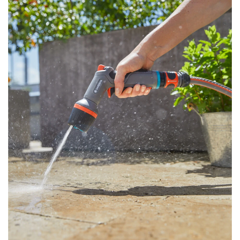 Gardena Comfort Spuitpistool EcoPulseDe Gardena city gardening Balkon Broes heeft een handige en compacte vorm en dankzij de verminderde waterstroom een bijzonder zacht straal, waardoor het mogelijk is om planten te besproeien zonder ze te beschadigen. Het ergonomische handvat met zachte kunststofonderdelen zorgt voor optimaal bedieningscomfort tijdens het gebruik. De waterstroom kan traploos worden aangepast. De geïntegreerde vergrendeling op de triggerknop is bijzonder ergonomisch en voor