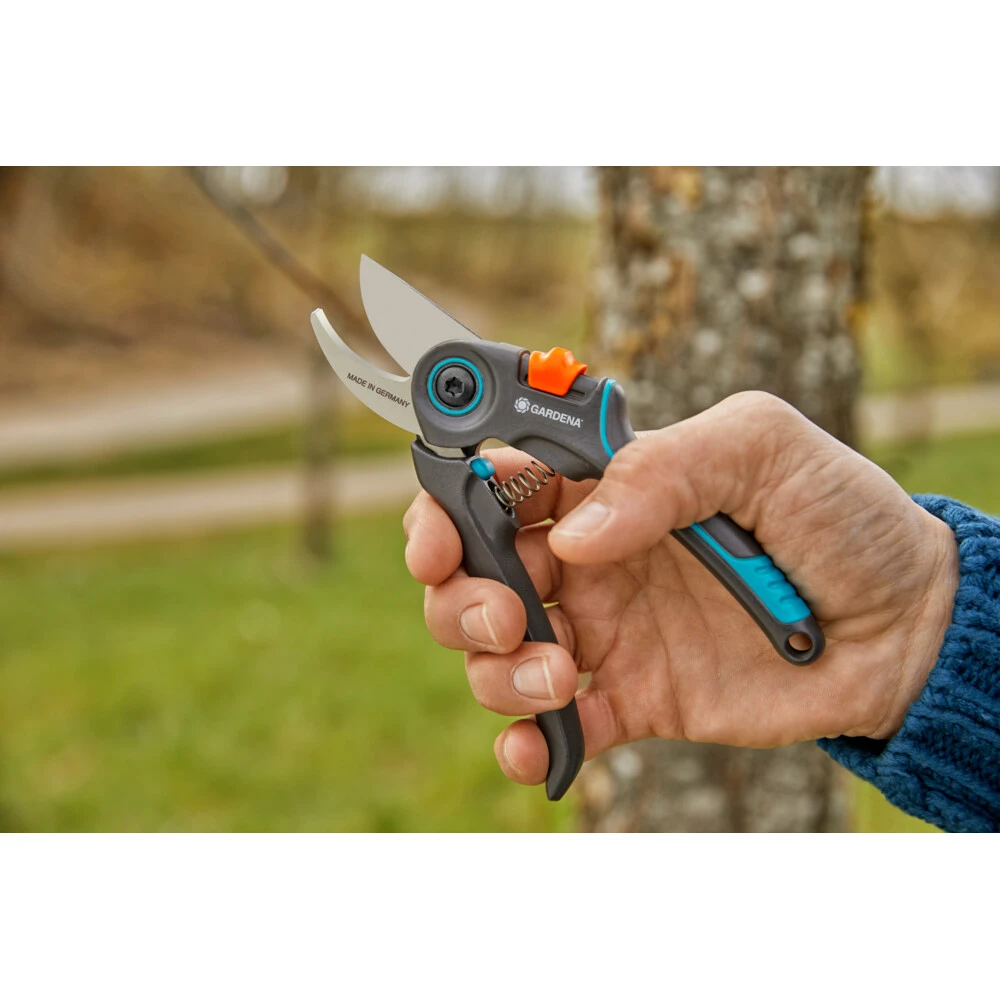 Gardena ExpertCut ExpertCutDe ExpertCut-snoeischaar van Gardena is de ideale snoeischaar voor hobbytuinierders. Deze snoeischaar voor planten, bomen en struiken is ideaal voor iedereen die veel waarde hecht aan nauwkeurig en grondig snoeien, eersteklas vakmanschap met hoogwaardige materialen en bovenal veel duurzaamheid. De bladen hebben een hardheid van maximaal 60 HRC dankzij een extra fase in het verhardingsproces. Hierdoor is de schaar niet alleen erg scherp en nauwkeurig, maar ook heel robu