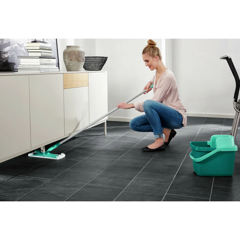 Leifheit Combi Clean Vloerwisser M – 33 cm Compleet SysteemGrondig schoonmaken zonder bukken en zonder vuil water aan je handen: Leifheit Set Combi Clean heeft alles wat je nodig hebt om je vloeren gemakkelijk schoon te houden: een vloerwisser met rondom-vloerdoek, draaigewricht en plat neerklapbare steel. Een compacte 12-liter-emmer en een praktische Combi pers voor gemakkelijk uitwringen. Wisbreedte: 34 cm. Geschikt voor alle harde vloeren.Geschikt voor alle harde vloeren360°-draaigewricht