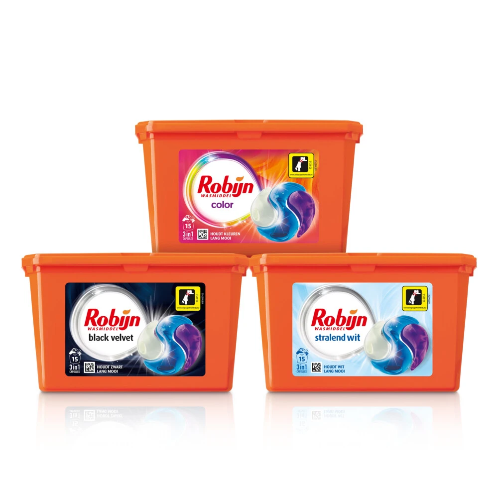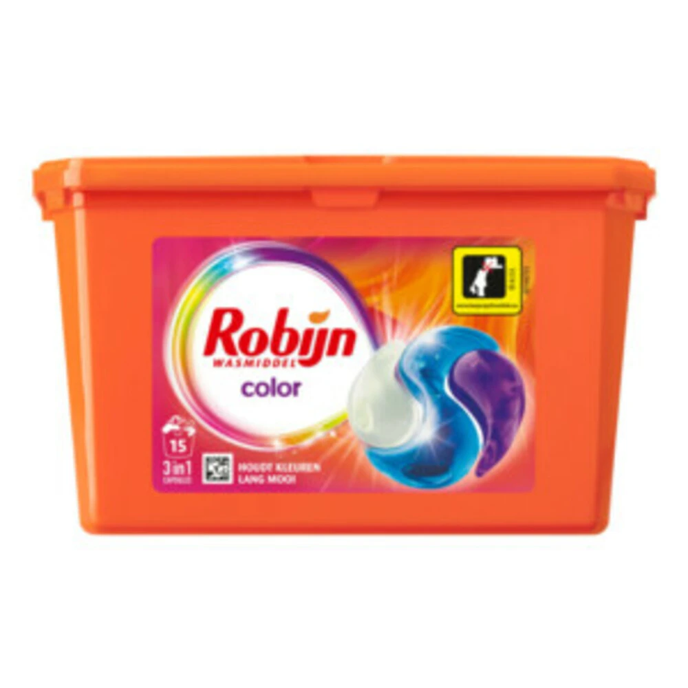 Robijn 3 in 1 Capsules PakketRobijn Color 3 in 1 wasmiddel capsules wassen je gekleurde was schoon en houden je kleding lang mooi met de heerlijke geur van Robijn.Robijn capsules Color speciaal voor de gekleurde wasHoudt kleding lang mooiRobijn capsules wassen je kleding stralend schoon, zonder kleuren te vervagenRobijn capsules laten je was heerlijk ruiken, zoals je van Robijn gewend bentRobijn capsules zijn makkelijk in gebruikGebruik voor een optimaal resultaat in combinatie met Robijn Passie