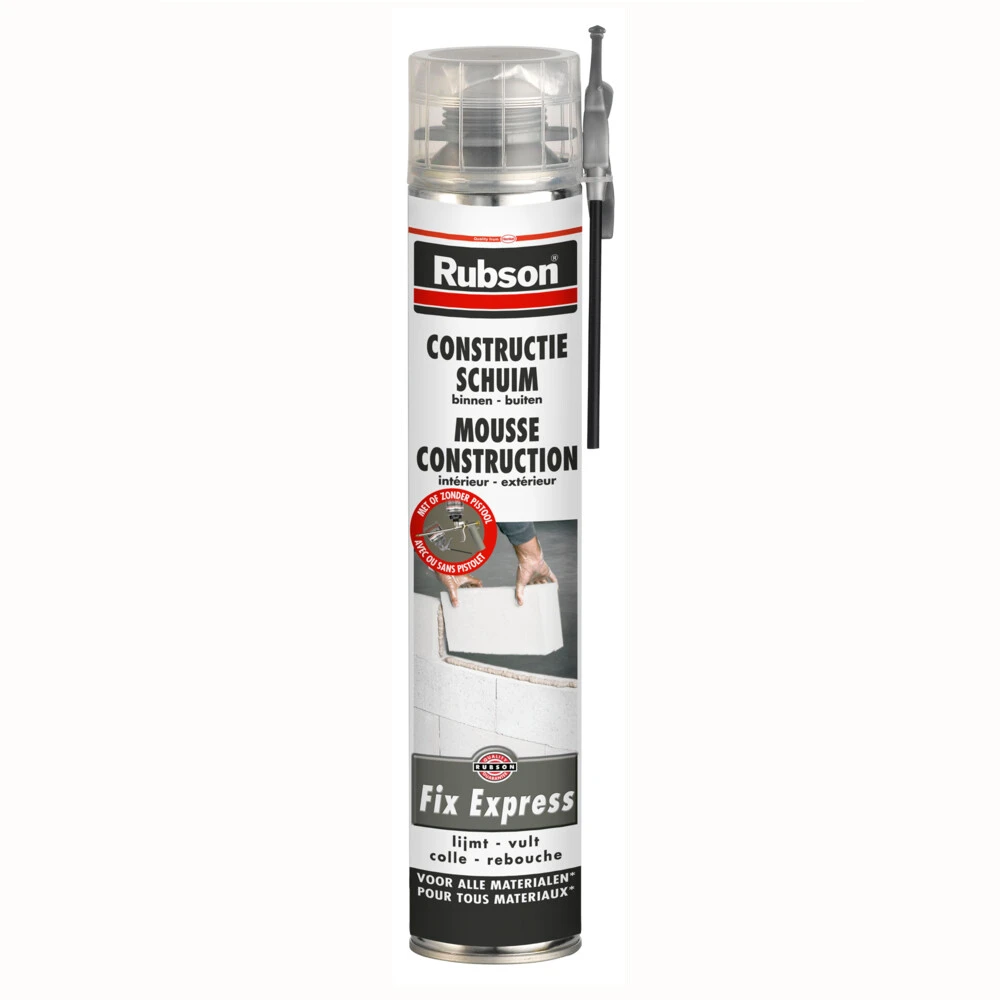 Rubson Constructieschuim Fix ExpressRubson Constructie Purschuim is een 1-component montageschuim voor het monteren van alle gangbare bouwmaterialen. Geschikt voor vrijwel alle bouwmaterialen. Rubson Constructie heeft een laag uitzettingsvermogen, dus drukt de te verlijmen materialen niet uit elkaar. Door de dichte en compacte structuur kunt je een hoog rendement behalen.Ideaal voor het monteren van alle gangbare bouwmaterialenLaag uitzettingsvermogenDichte en compacte structuur