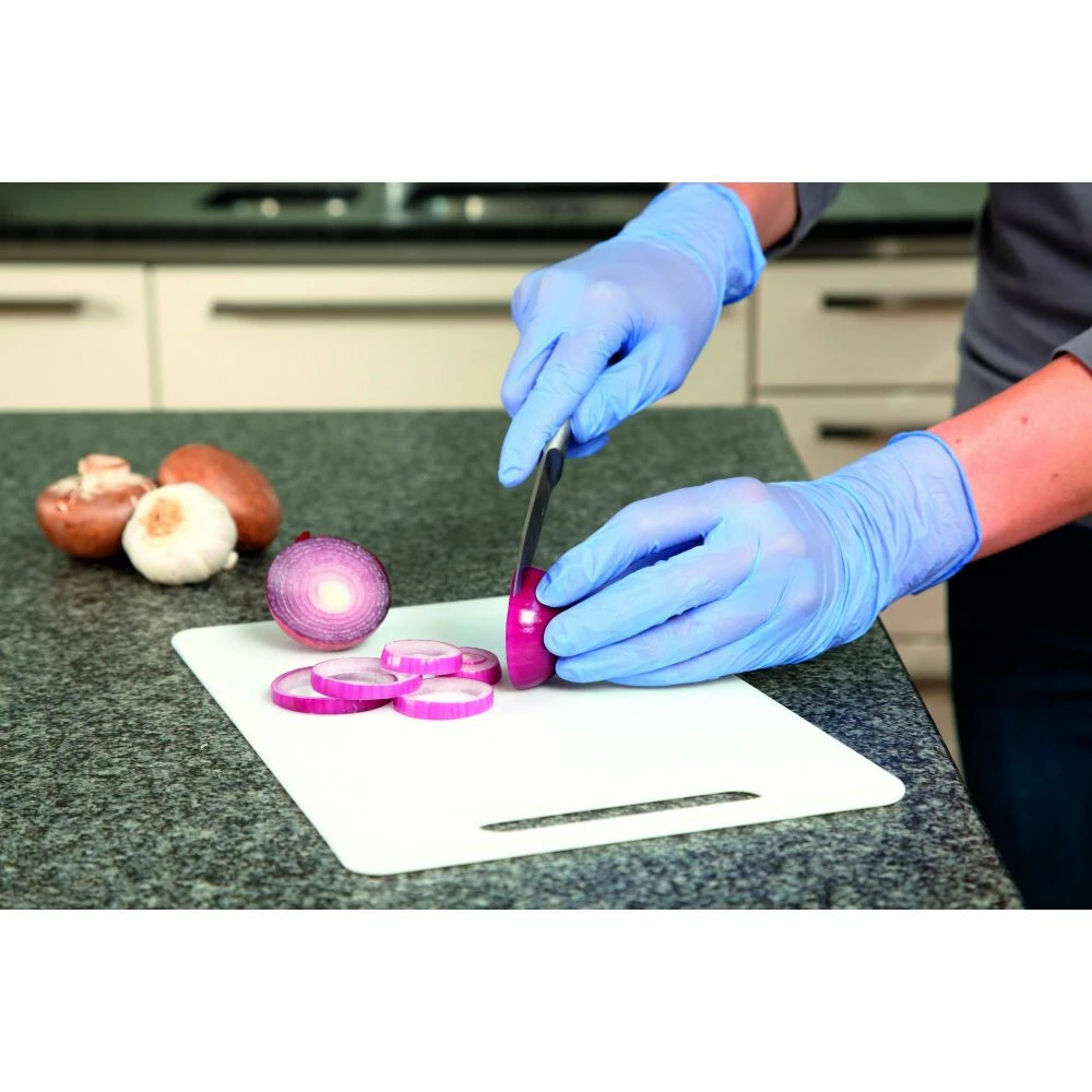 Handschoenen LatexvrijDe handschoenen Multi Sensitive 40+10 werden speciaal ontwikkeld voor het werken met voedsel.Dankzij de samenstelling in nitril, ideaal voor mensen met een allergie voor latexPerfect bestand tegen vettenNiet gepoederd, dus geen gevaar op besmetting van het voedselReliëf op de vingertoppen voor een perfecte grip, zowel droog als natOpvallende kleur te midden van het voedselZacht, zeer fijn en elastisch voor meer comfort en een betere tastwaarneming terwijl ze toch zeer ster