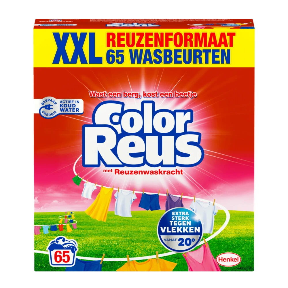Witte Reus Waspoeder Color 3.575 gr – 65 wasbeurtenColor Reus is een waspoeder van Witte Reus speciaal ontwikkeld voor alle gekleurde was. De formule van Color Reus beschermt kleuren en laat ze langer stralen.Color Reus waspoeder is het ideale wasmiddel voor gezinnen. Dankzij zijn sterke waskracht is het wasmiddel een krachtige vlekverwijderaar en is extra sterk tegen vlekken, al vanaf 20 graden Celsius. Het resultaat? Een stralend schone gekleurde was met behoud van de kleurintensiteit! Door de