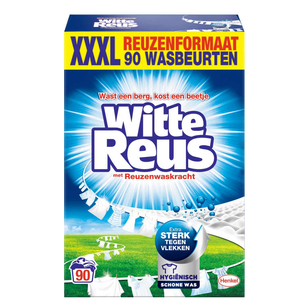 Witte Reus Waspoeder Wit 4950 gr – 90 wasbeurtenWitte Reus waspoeder is speciaal ontwikkeld voor alle witte was en bevat de vertrouwde reuzenwaskracht. Extra sterk tegen vlekken, extra veel schone was.Witte Reus waspoeder is het ideale wasmiddel voor gezinnen. Dankzij zijn sterke waskracht is het wasmiddel een krachtige vlekverwijderaar en is extra sterk tegen vlekken, al vanaf 20 graden Celsius. Het resultaat? Een stralend schone witte was! Door de hoogwaardige parfumtechnologie in het poeder w